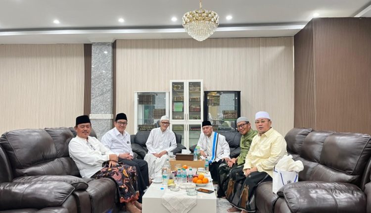 RISALAH NU-ONLINE, JAKARTA – KH Achmad Chalwani Nawawi (Rais ‘Ali) dan KH Ali Masykur Musa (Mudir ‘Ali) Jam’iyah Ahlith Thariqah al-Mu’tabarah an-Nahdliyah (JATMAN) berkunjung ke kediaman Rais ‘Aam PBNU KH Miftachul Alhyar di kompleks Pesantren Miftachus Sunnah, Surabaya, Jawa Timur, Rabu (11/6/2025).