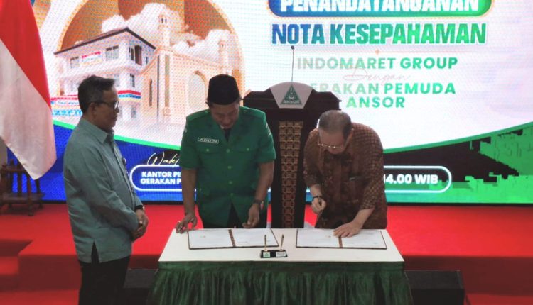RISALAH NU ONLINE, JAKARTA – Pimpinan Pusat Gerakan Pemuda Ansor resmi menjalin kerja sama dalam bidang ekonomi ritel berbasis organisasi bersama Indomaret. Penandatanganan Memorandum of Understanding (MoU) secara langsung dilakukan Ketua Umum PP GP Ansor Addin Jauharudin dengan CEO Indomaret Sinarman Jonathan di Kantor Pusat GP Ansor, Jalan Kramat Raya 164, Jakarta Pusat, Selasa (22/7/2025).