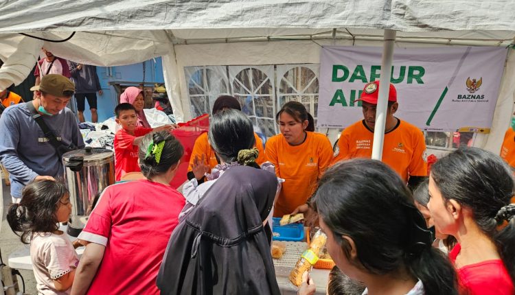 RISALAH NU ONLINE, JAKARTA – Badan Amil Zakat Nasional (BAZNAS) RI melalui Tim BAZNAS Tanggap Bencana (BTB) dan Rumah Sehat BAZNAS terus memberikan layanan bantuan kemanusiaan seperti makanan siap saji, dan multivitamin bagi warga terdampak kebakaran di kawasan Jaya 65, Kelurahan Duri Utara, Kecamatan Tambora, Jakarta Barat.