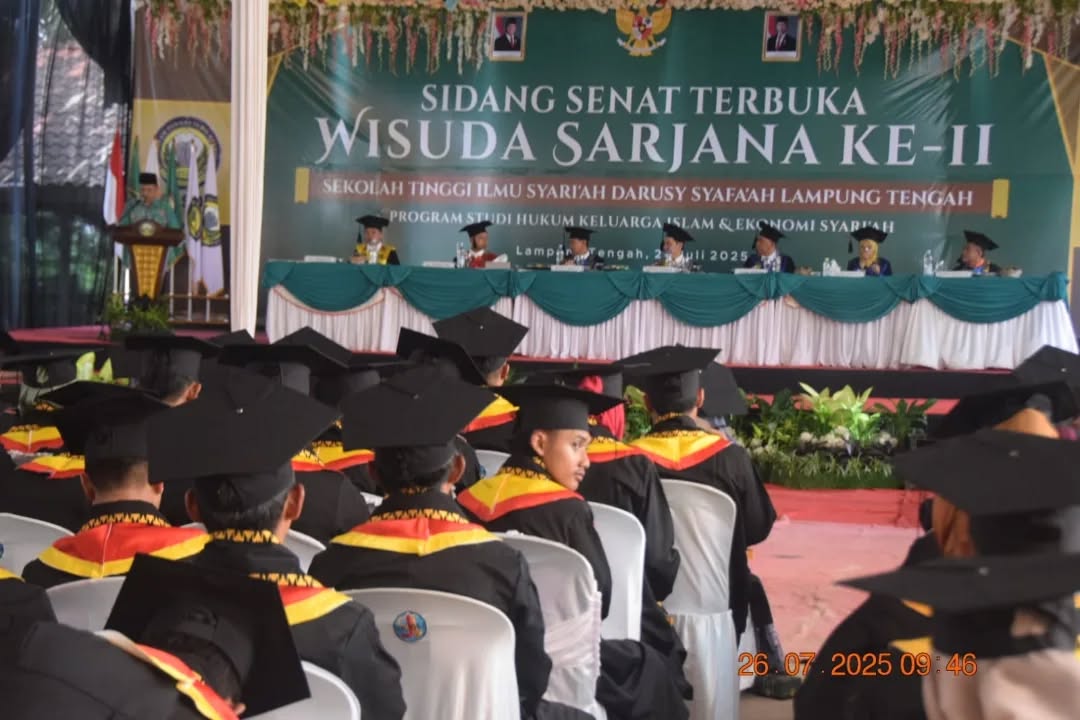 Hal tersebut disampaikan Ketua Sekolah Tinggi Ilmu Syari’ah Darusy Syafa’ah (STISDA) Lampung Tengah, Dr. H. Andi Ali Akbar, M.Ag, disela-sela sidang senat terbuka wisuda sarjana ke-2 tahun akademik 2024/2025, di kampus STISDA Lampung Tengah, Jalan Jenderal Sudirman RT 12/RW 06 Dusun Kotasari I, Kampung Kotagajah, Kecamatan Kotagajah, Kabupaten Lampung Tengah, Propinsi Lampung, pada Sabtu, (26/7/2025) siang, bertepatan 1 Shafar 1447 H.