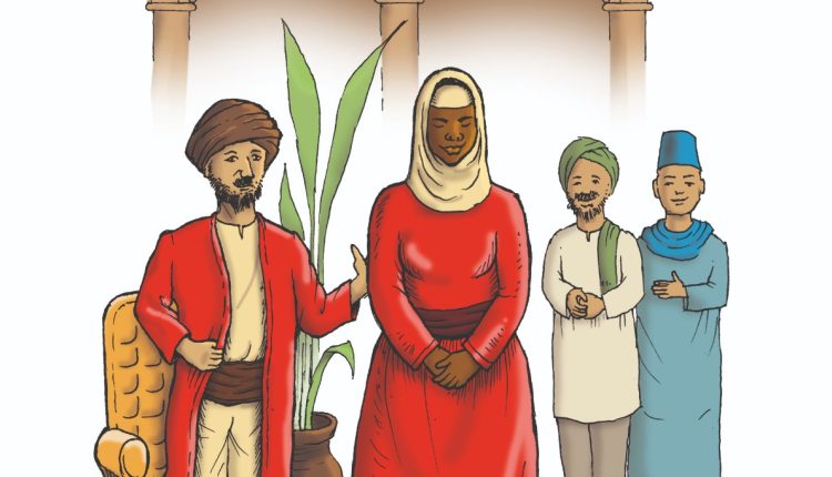 Khalifah Harun Al-Rasyid juga tengah menikmati udara luar di taman kerajaannya yang indah. Harun bersama sang Ibu, Khaizaran binti Atha’ yang tengah bermain dengan cucu-cucunya: Muhammad Al-Amin dan Abdullah Al-Ma’mun yang tengah bemain perang-perangan. Si kecil Al-Mus’tain masih dalam gendongan seorang budak kerajaan.