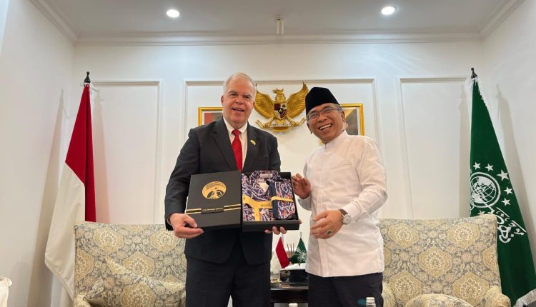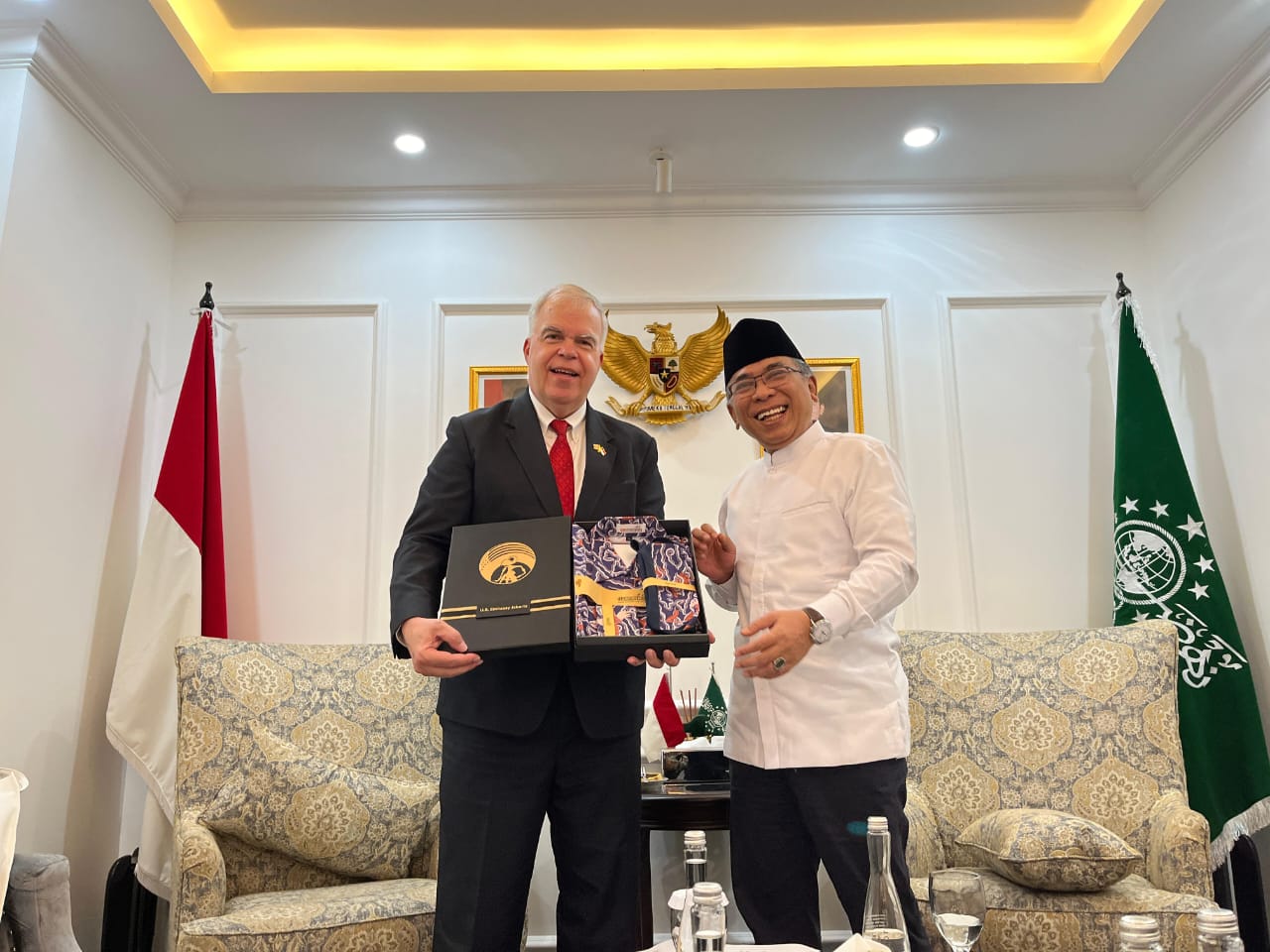 RISALAH NU ONLINE, JAKARTA – Duta Besar Amerika Serikat Peter M Haymond berkunjung ke Kantor Pengurus Besar Nahdlatul Ulama (PBNU), Jakarta Pusat, Selasa (12/8/2025). Kedatanga Dubes Haymond disambut langsung oleh Ketua Umum PBNU KH Yahya Cholil Staquf di Lantai 3, Gedung PBNU.