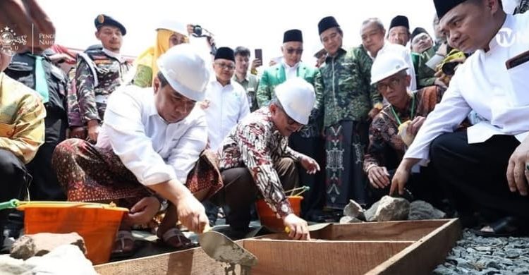 Peletakan batu pertama dipimpin langsung oleh Prof. Dr. Abdul Mu’ti selaku Sekretaris Umum PP Muhammadiyah yang juga menjabat Menteri Pendidikan Dasar dan Menengah, bersama KH. Saifullah Yusuf, Sekjen PBNU sekaligus Menteri Sosial dan diikuti Pengurus PCNU dan Muhamadiyah.