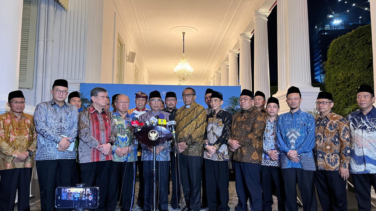 Setelah pertemuan selesai, para pemimpin ormas keagamaan memberikan pernyataan pers terkait hasil diskusi mereka dengan Presiden mengenai kondisi negara pasca-demonstrasi besar-besaran di berbagai wilayah. Ketua Umum Pengurus Besar Nahdlatul Ulama (PBNU), KH Yahya Cholil Staquf atau Gus Yahya, mewakili para tokoh ormas lain, menjelaskan bahwa pertemuan ini menghasilkan kesepakatan untuk bersatu dalam menjaga kerukunan bangsa.