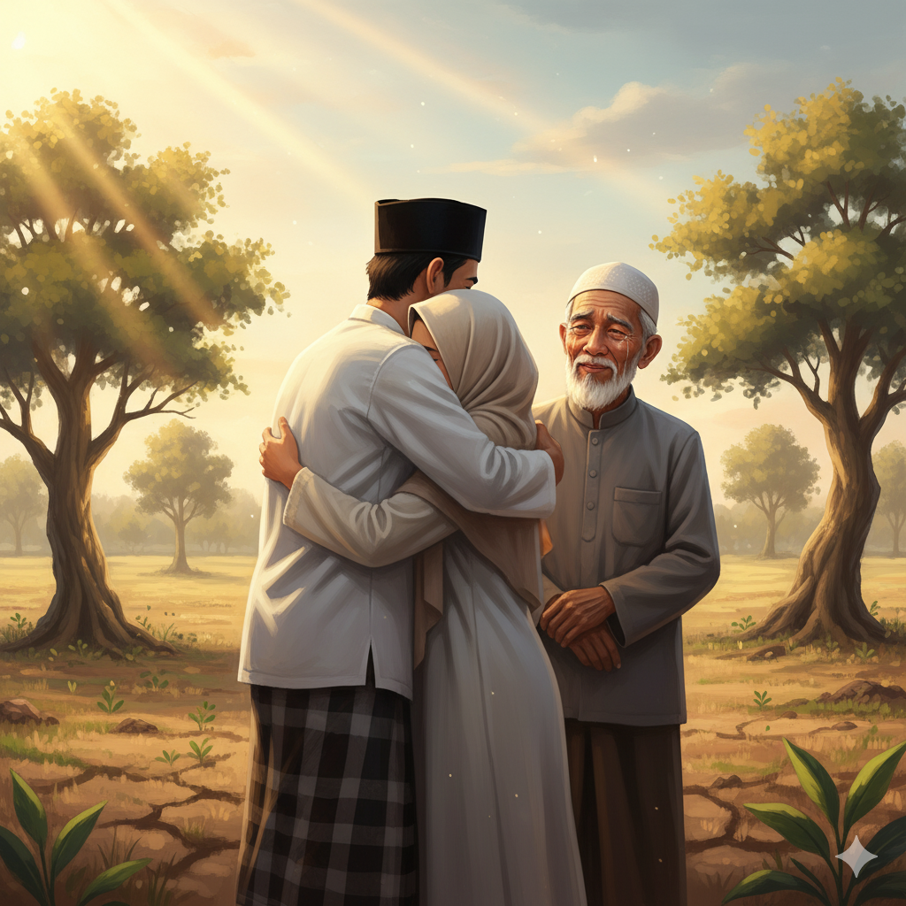 “Tari… Fajar…wangsul ning ndalem yo, nak?” “(Tari…Fajar…ikut Buya pulang ke rumah ya, nak?)” pinta Abuya penuh harap keluarganya bisa utuh kembali.
