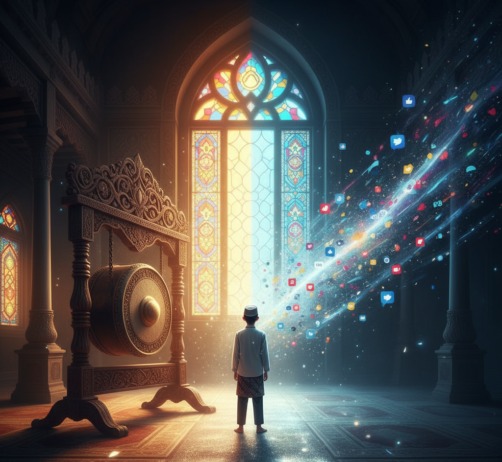 Sore tadi, kiai Mahrus bahkan sempat menegur santri yang kedapatan sibuk dengan gawainya saat waktu jamaah hamper tiba. “Le, elinga. Yen bedug muni, niku tandha gusti Allah nyuwun rawuhe kowe. Aja nganti kalah karo bunyi ‘ting’ saka HP-mu,” dawuh beliau dengan nada teduh namun tegas. Arif mendengar itu, dan hatinya seperti ditusuk rasa bersalah. Ia ingin taat sepenuhnya, menjaga tradisi, focus pada kitab dan amalan. Tapi ia juga sadar, ada hal-hal yang tak bisa lagi dipisahkan dari teknologi. Bahkan beberapa kajian kitab klasik kini direkan dan diunggah di media sosial, menyebar lebih luas daripada suara bedug di serambi pesantren.