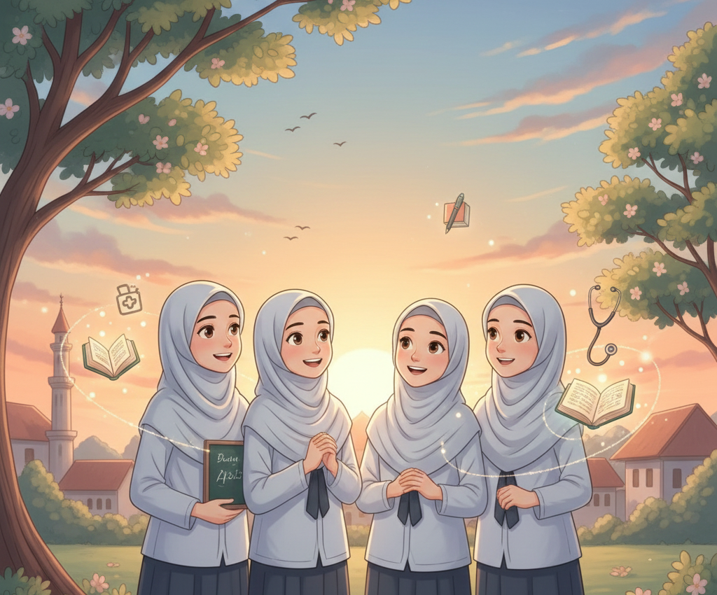 Kami berempat saling berpandangan. Di mata masing-masing, ada janji yang tak terucapkan. Kami akan saling mendukung, saling menguatkan, dan berjuang bersama untuk meraih impian kami. Kami tahu, cita-cita kami bukan hanya untuk diri sendiri, tapi untuk kebaikan orang lain.