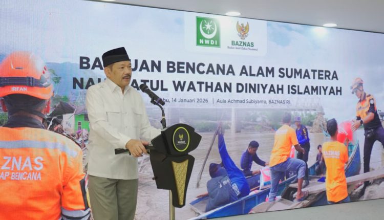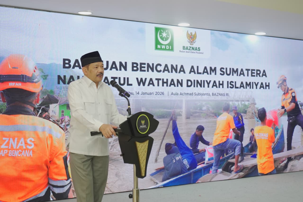 Bantuan tersebut diserahkan secara simbolis oleh Wakil Sekretaris Jenderal PB NWDI Dr. M. Syaroni Rofi’i, M.A., dan diterima langsung oleh Ketua BAZNAS RI Prof. Dr. KH. Noor Achmad, M.A., di Gedung BAZNAS RI, Jakarta, Rabu (14/1/2026).