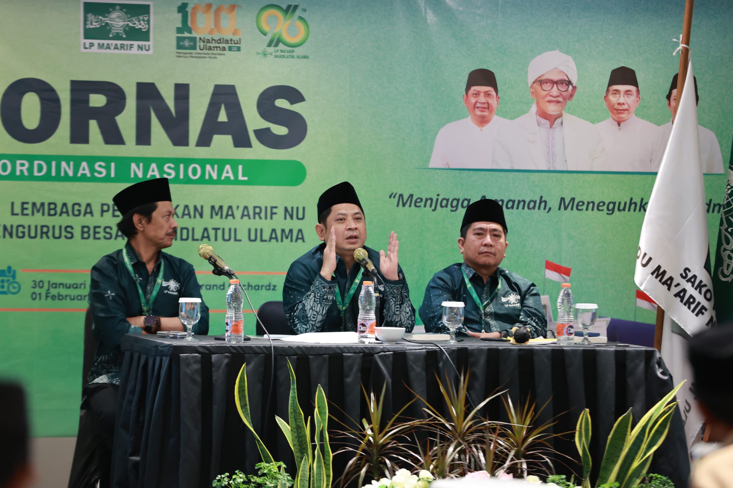 Rakornas ini dihadiri oleh jajaran pengurus LP Ma’arif NU PBNU, PW LP Ma’arif NU dan Sako Pandu Ma’arif se-Indonesia, serta para pemangku kepentingan pendidikan. Dalam arahannya, Ketua LP Ma’arif NU PBNU, M. Ali Ramdhani, menegaskan pentingnya penguatan sistem pendidikan Ma’arif NU agar mampu menjawab tantangan demografi, perubahan sosial, dan kebutuhan masa depan.