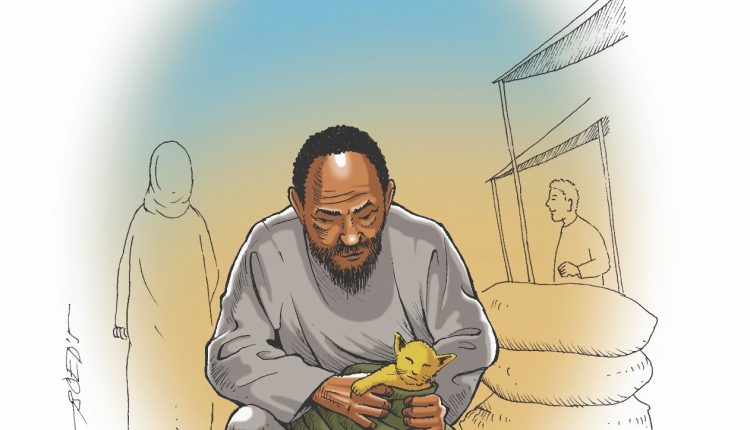 Ketika melintasi sebuah lorong, langkahnya terhenti. Dari balik tumpukan karung gandum yang basah, terdengar suara lirih—lemah, nyaris tak terdengar. Asy-Syiblī mendekat dan berlutut. Di sana, ia melihat seekor kucing kecil, tubuhnya gemetar hebat, bulunya kusut dan basah oleh embun dingin. Matanya setengah terpejam, seolah pasrah menunggu takdir.