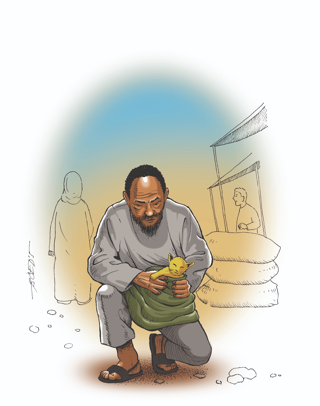 Lantas, seekor kucing sedih keluar dari zawiyah.
