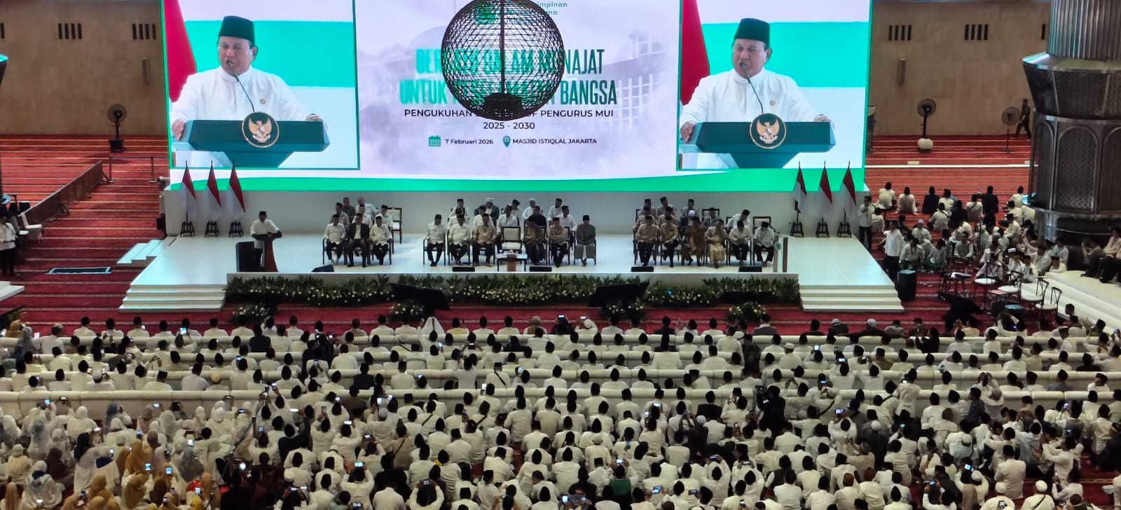 “MUI tidak pernah absen dari saat-saat negara sulit. Salut saya kepada peran dan rasa tanggung jawab Majelis Ulama Indonesia,” ujar Prabowo saat sambutan dalam Pengukuhan dan Ta’aruf Pengurus MUI Periode 2025-2030 yang dirangkaikan dengan acara “Bersatu dalam Munajat untuk Keselamatan Bangsa” pada Sabtu, 7 Februari 2026 di Masjid Istiqlal, Jakarta Pusat, Sabtu (7/2/2026).