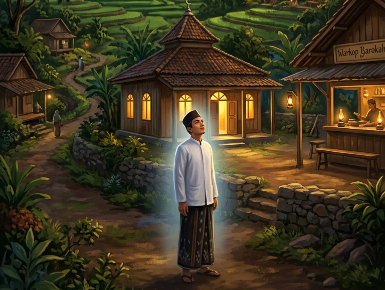 dalam diam. Seorang ustadz desa mendekatinya, meletakkan tangan di pundaknya, dan berbisik, “Allah tidak memberi ujian kecuali pada orang yang mampu. Sesungguhnya kamu sudah kuat, Refano. Tapi sekarang, kamu harus lebih kuat lagi.” Kata-kata itu menyalakan api baru dalam dirinya. Sejak saat itu, Refano bekerja lebih giat di Warkop Barokah, sekaligus tetap aktif di masjid.