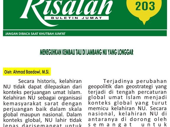 Buletin Jumat resmi Nahdlatul Ulama untuk dicetak jarak jauh.