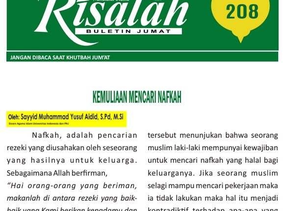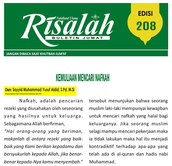 Buletin Jumat resmi Nahdlatul Ulama untuk dicetak jarak jauh.