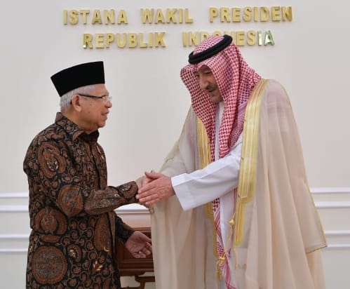 RISALAH NU ONLINE, JAKARTA — Wakil Presiden (Wapres) K.H. Ma’ruf Amin menerima Kunjungan Kehormatan Wakil Menteri Luar Negeri (Wamenlu) Kerajaan Arab Saudi Waleed bin Abdul Karim El-Khereji, di Istana Wakil Presiden, Jl. Merdeka Selatan No.6, Jakarta Pusat, Kamis (11/01/2024).