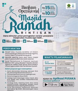 RISALAH NU ONLINE, JAKARTA – Kementerian Agama (Kemenag) membuka program pengajuan Bantuan Operasional Masjid Ramah. Bantuan tersebut mencakup dana senilai Rp15 juta untuk masjid dan Rp10 juta untuk musala.