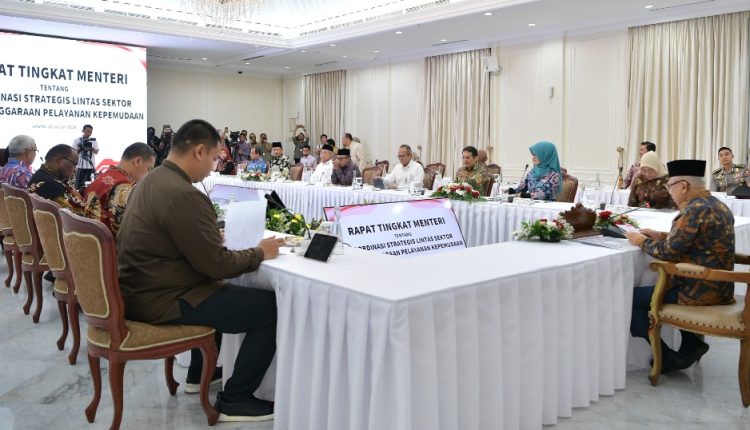 RISALAH NU ONLINE, JAKARTA – Wakil Presiden (Wapres) KH Ma’ruf Amin memonitoring progres pelaksanaan Peraturan Presiden (Perpres) Nomor 43 Tahun 2022 tentang Koordinasi Strategis Lintas Sektor Penyelenggaraan Pelayanan Kepemudaan. Hal itu dilakukannya saat memimpin Rapat Tingkat Menteri Koordinasi Strategis Lintas Sektor Penyelenggaraan Pelayanan Kepemudaan di Istana Wapres, Jl. Medan Merdeka Selatan No. 6, Jakarta Pusat, Kamis (25/01/2024).