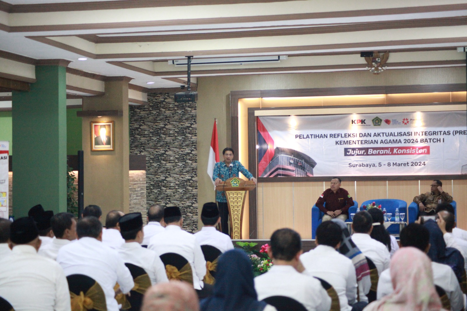 RISALAH NU ONLINE, SURABAYA – Kementerian Agama (Kemenag) bekerja sama dengan Komisi Pemberantasan Korupsi (KPK) menyelenggarakan Pelatihan Refleksi dan Aktualisasi Integritas (PRESTASI) bagi para pejabat terasnya. Pelatihan ini bertujuan untuk membangun integritas dan membentuk agen perubahan di lingkungan Kemenag.