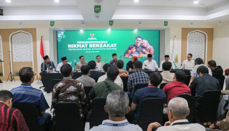 Hal tersebut mengemuka pada “Konferensi Pers Ramadhan 1445 H Nikmat Berzakat: Tentramnya Muzaki, Bahagianya Mustahik” yang diselenggarakan di Gedung BAZNAS RI, Jakarta, Jumat (8/3/2024).