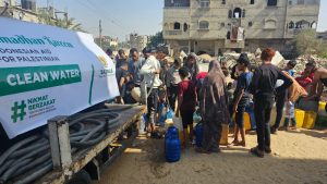 RISALAH NU ONLINE, JAKARTA – Badan Amil Zakat Nasional (BAZNAS) RI bekerja sama dengan lembaga lokal di Gaza, Althouri Woman Center (AWC) mendistribusikan air bersih bagi para pengungsi Palestina di tiga titik wilayah Rafah, yakni Kamp Al Salam, Kamp Al Twahed, dan Haron Kamp Al Ashed.