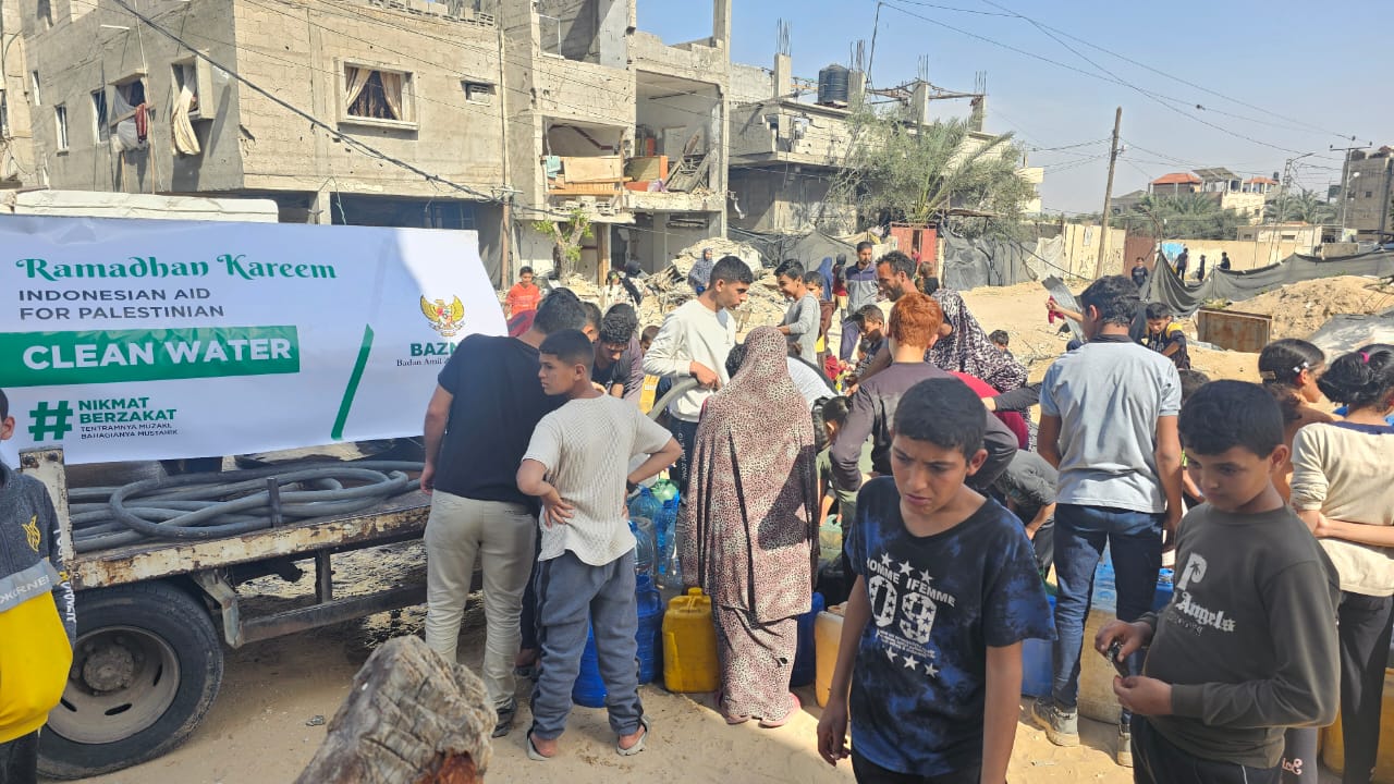 Pendistribusian air bersih di bulan Ramadhan ini merupakan komitmen BAZNAS untuk membantu mengatasi krisis air bersih yang melanda para pengungsi Palestina khususnya di kamp pengungsi Palstina di wilayah Rafah.
