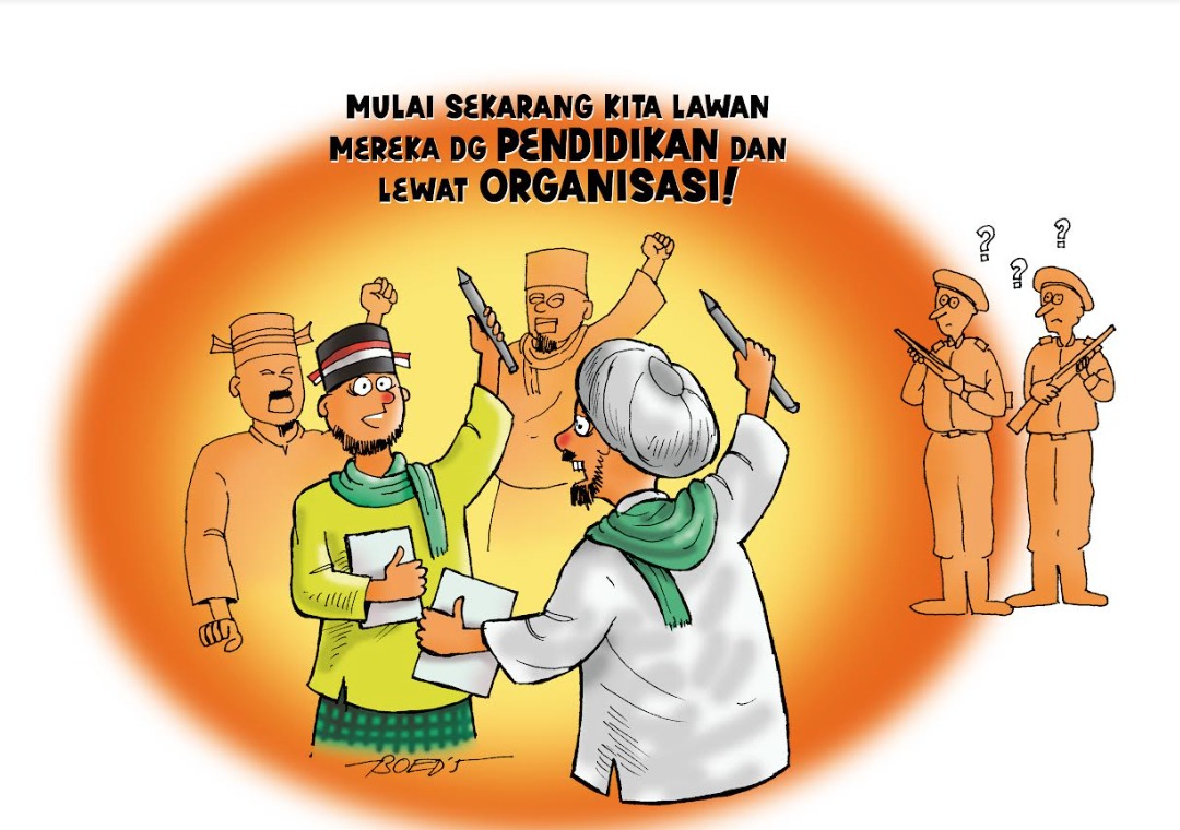 Setelah perlawanan di atas tadi tidak menghasilkan tujuannya disebabkan perlengkapan alat-alat kita tidak seimbang dan liciknja politik penipuan dan pemecah belah dari pihak Belanda terhadap kita, maka sejak itu pemimpin-pemimpin Islam menjalankan taktik baru dengan memusatkan se gala usahanja kepada mendidik kader-kader yang tidak mengenal kerdja sama dengan Belanda.