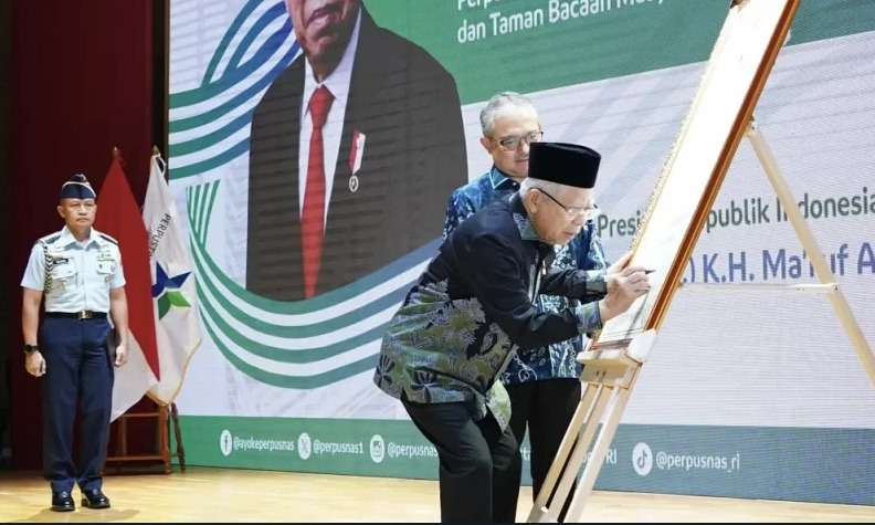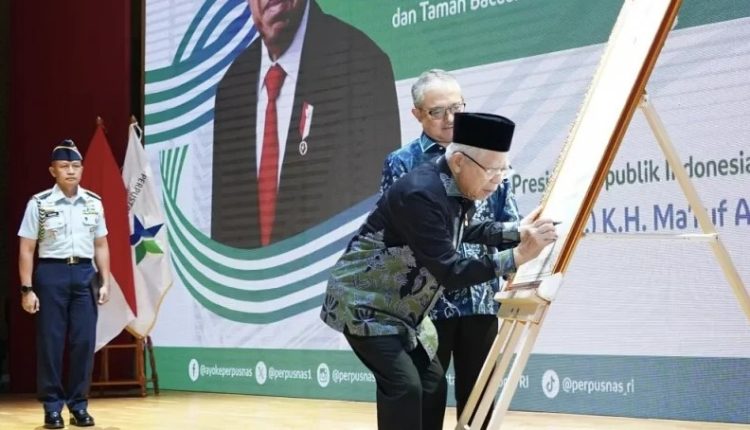 RISALAH NU ONLINE, JAKARTA – Wakil Presiden RI KH. Ma’ruf Amin menghadiri Acara Puncak Hari Ulang Tahun (HUT) ke-44 Perpustakaan Nasional RI dan Hari Buku Nasional 2024 dengan tema “Merajut Asa Melayani Negeri untuk Mencerdaskan Bangsa” yang dilaksanakan pada Jumat, (17/5/2024) di Ruang Teater Lantai 2 Gedung Perpusnas RI, Jakarta.