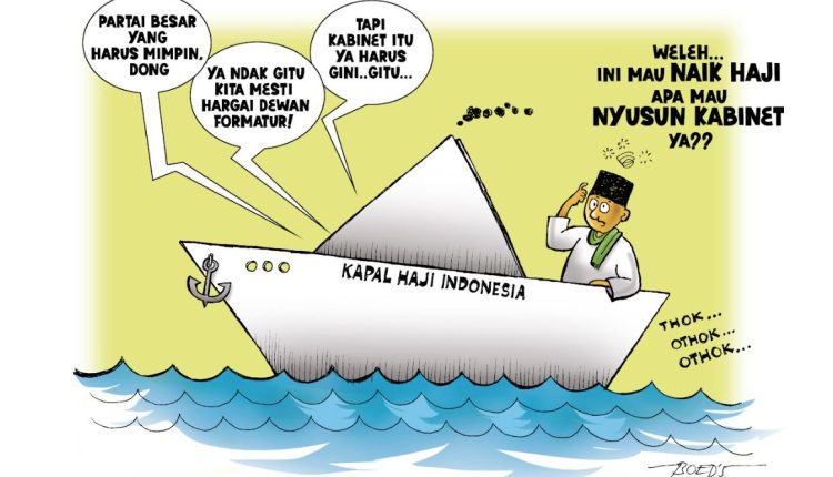Baiknya komposisi dan personalia kabinet itu begini, kata seorang calon haji dari partai NU supaya NU dan Masyumi sama duduk di kabinet. Ah, mana bisa, musti begini, kata calon haji yang lain dari PNI. Calon haji anggota PSII mengemukakan pendapatnya yang paling jitu katanya. Tidak, kata calon haji yang lain lagi dari partai satunya, kabinet yang paling kuat musti begini susunannya dan orang-orangnya mesti ini dan ini, begitu katanja sambil bersikap gagah seperti formatur menyerahkan hasil usahanya di hadapan Kepala Negara.