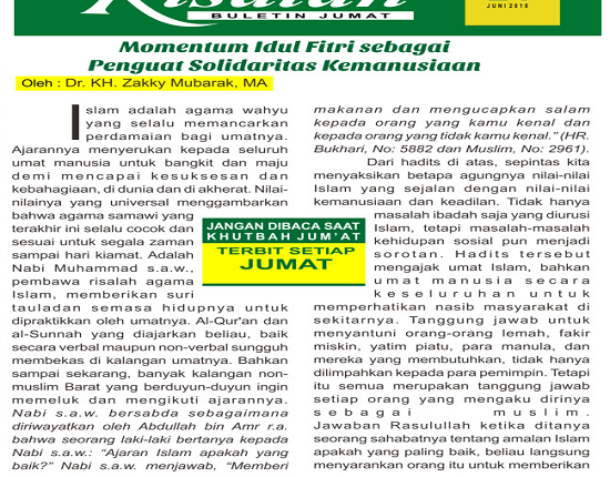 Buletin Jumat resmi Nahdlatul Ulama untuk dicetak jarak jauh.