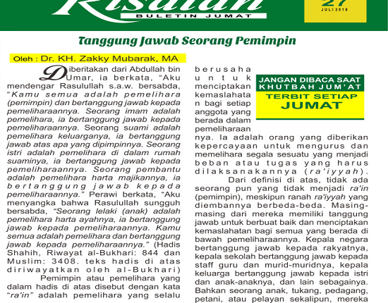 Buletin Jumat resmi Nahdlatul Ulama untuk dicetak jarak jauh.