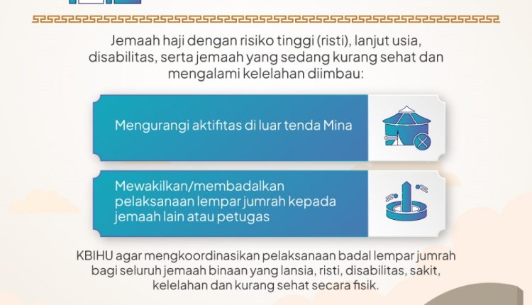 “Merujuk pada imbauan Kementerian Haji dan Umrah Arab Saudi, kami meminta jemaah untuk tidak melontar jumrah sebelum pukul 16.00 waktu Arab Saudi,” kata Wibowo, Senin (17/6/2024).