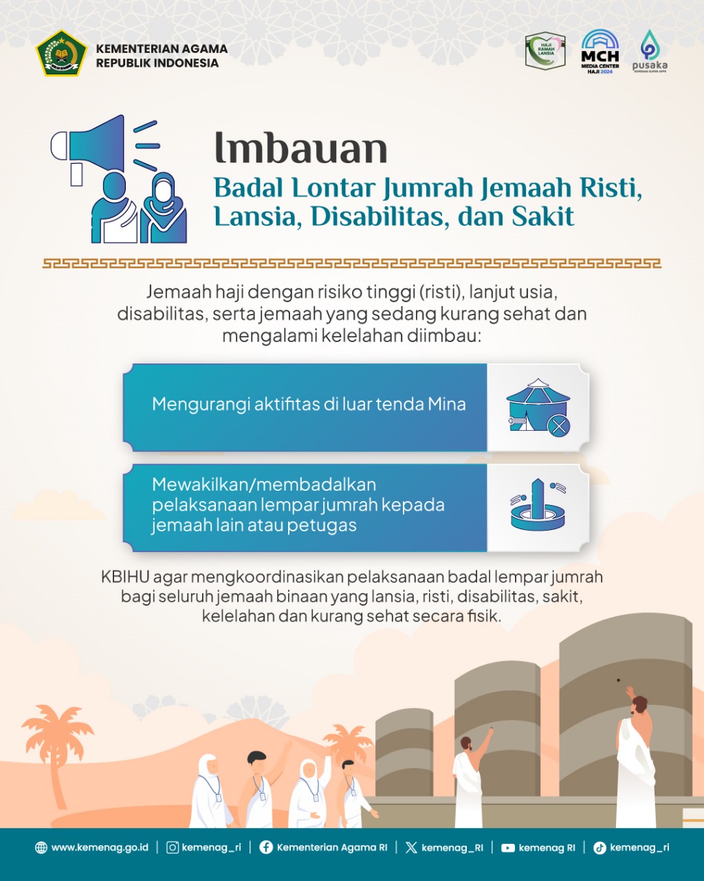 Ia mengungkapkan, imbauan ini dikeluarkan mengingat suhu yang tinggi serta untuk menghindari tekanan panas bagi jemaah.