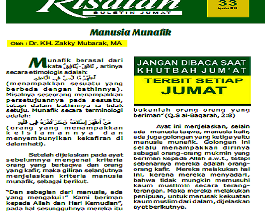 Buletin Jumat resmi Nahdlatul Ulama untuk dicetak jarak jauh.
