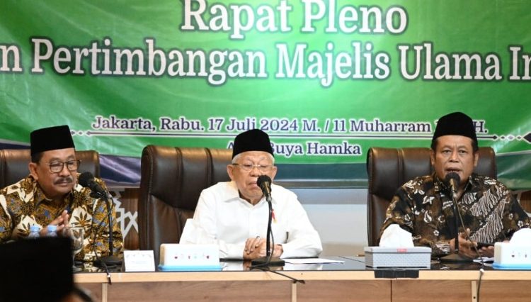 RISALAH NU ONLINE, JAKARTA – Dewan Pertimbangan Majelis Ulama Indonesia kembali menggelar Rapat Pleno bersama para pimpinan MUI. Rapat dipimpin langsung oleh Ketua Dewan Pertimbangan MUI sekaligus Wapres RI, KH Ma’rud Amin, Rabu (17/7/2024).
