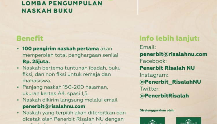 2. Naskah yang terpilih akan diterbitkan dan dicetak oleh Penerbit Risalah NU dengan perimbalan Royalty penjualan buku
