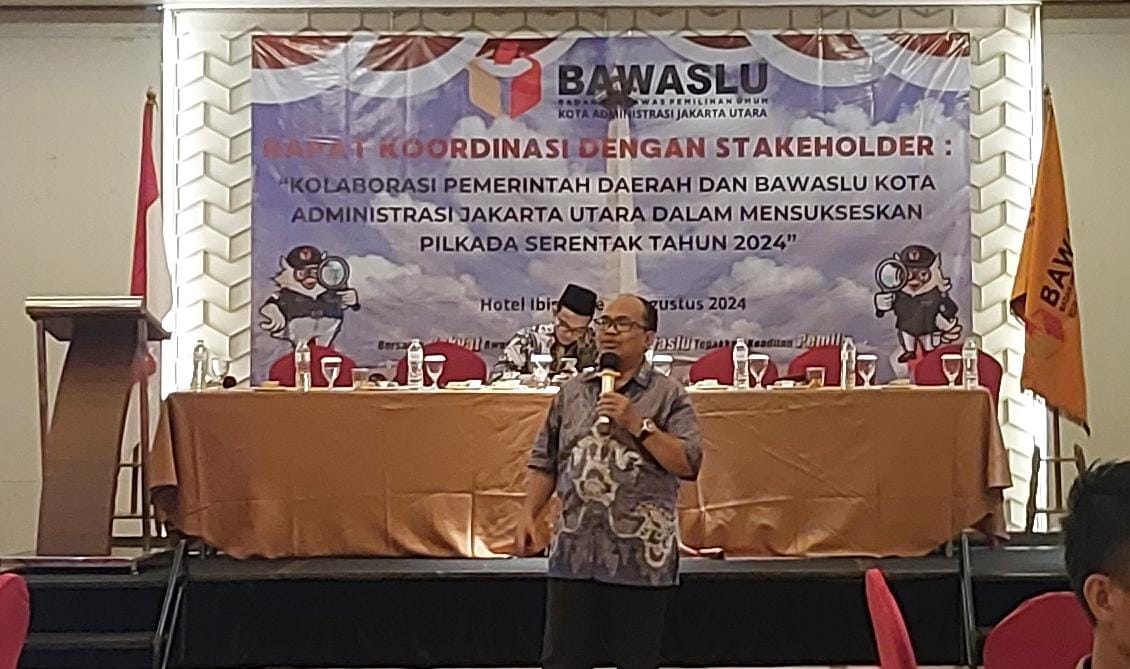 RISALAH NU ONLINE, JAKARTA – Badan Pengawas Pemilihan Umum (BAWASLU) Kota Administrasi Jakarta Utara menggelar rapat koordinasi yang mengangkat tema “Kolaborasi Pemerintah Daerah dan BAWASLU Kota Administrasi Jakarta Utara dalam mensukseskan Pilkada Serentak tahun 2024 di Hotel Ibis Style, Sunter, Jakarta Utara pada Jumat (23/8/24).