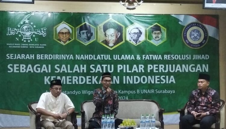 Hal itu terungkap dalam Sarasehan kebangsaan bertema “Berdirinya NU dan Resolusi Jihad NU sebagai Salah Satu Pilar Kemerdekaan Indonesia”, di Gedung Soetandyo Wignjosubroto, Universitas Airlangga (UNAIR) Surabaya, Minggu 6 Oktober 2024.