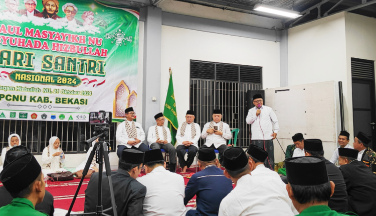 RISALAH NU ONLINE, BEKASI – Dalam rangka memperingati hari santri Nasional 2024. Pengurus Cabang Nahdlatul Ulama (PCNU) Kabupaten Bekasi sukses menggelar haul syuhada Hizbullah bersama dzuriyah syuhada Hizbullah.