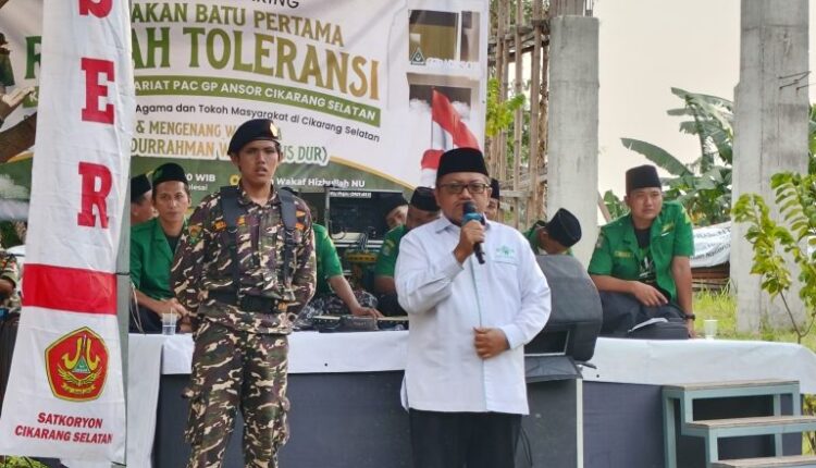 RISALAH NU ONLINE, JAKARTA – Pimpinan Anak Cabang (PAC) GP Ansor Kecamatan Cikarang Selatan adakan ground breaking peletakan batu pertama rumah toleransi kantor sekretariat PAC GP Ansor Cikarang Selatan di tanah wakaf Hizbullah NU Jl. KHR. Ma’mun Nawawi, Kp. Serang Rt. 011 RW. 006 Desa Sukadami Kecamatan Cikarang Selatan. Ahad, (29/12).