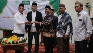 Tumpengan dihadiri Ketua PBNU Prof Mukri dan KH Ulil Absar Abdala sekaligus memberikan potongan tumpeng kepada pengurus JQH. (hud).