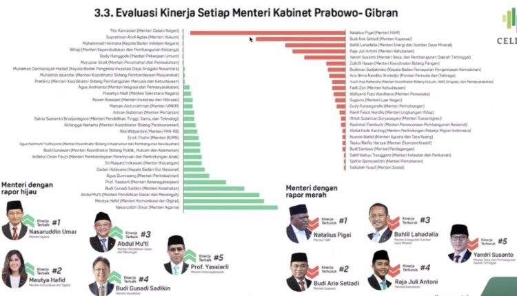 RISALAH NU ONLINE, JAKARTA – Menteri Agama dinilai berkinerja terbaik di antara jajaran Kabinet Merah Putih (KMP) Pemerintahan Prabowo – Gibran. Hal ini didasarkan pada Hasil Evaluasi Kinerja yang dilakukan Center of Economic and Law Studies (CELIOS) Jakarta.