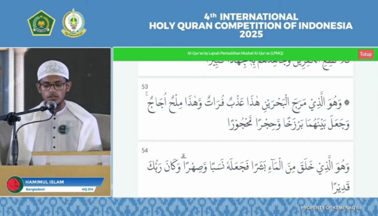 RISALAH NU ONLINE, JAKARTA – Seorang hafiz Qur’an asal Bangladesh, Hamimul Islam merasa terkesan dengan gelaran Musabaqah Tilawatil Quran (MTQ) Internasional ke-4 tahun 2025 di Indonesia. Saat mengetahui pembinaan seni baca Al-Qur’an yang dilakukan secara berjenjang mulai dari tingkat RT/RW hingga tingkat internasional, Hamimul mengaku takjub dengan hal tersebut.