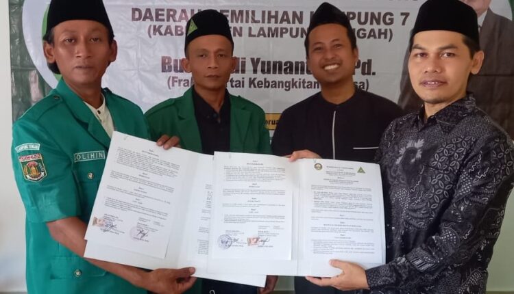 MoU ditandatangani di Kantor Pimpinan Cabang Gerakan Pemuda Ansor Kabupaten Lampung Tengah yang dihadiri oleh para kader Ansor di sela-sela pelatihan pertanian.
