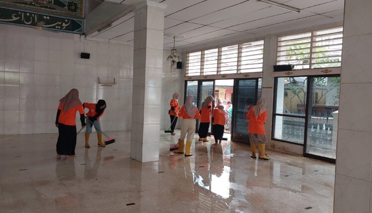 RISALAH NU ONLINE, JAKARTA – Badan Amil Zakat Nasional (BAZNAS) RI melalui tim BAZNAS Tanggap Bencana (BTB) bersama relawan penerima beasiswa BAZNAS melakukan aksi bersih-bersih di Masjid Jami’ Al Karomah, Cililitan, Kramat Jati, Jakarta Timur, pasca-banjir yang melanda kawasan tersebut.