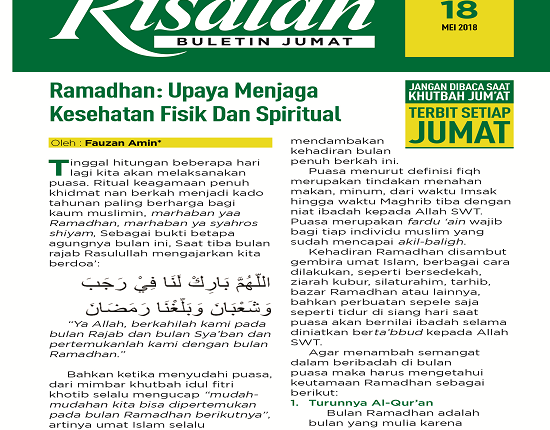 Buletin Jumat resmi Nahdlatul Ulama untuk dicetak jarak jauh.